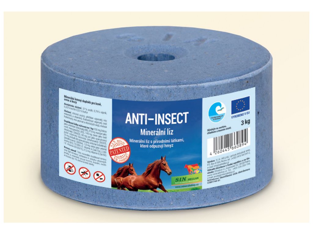 Anti Insect, minerální liz s přírodními látkami, které odpuzují hmyz - Balení 3 kg