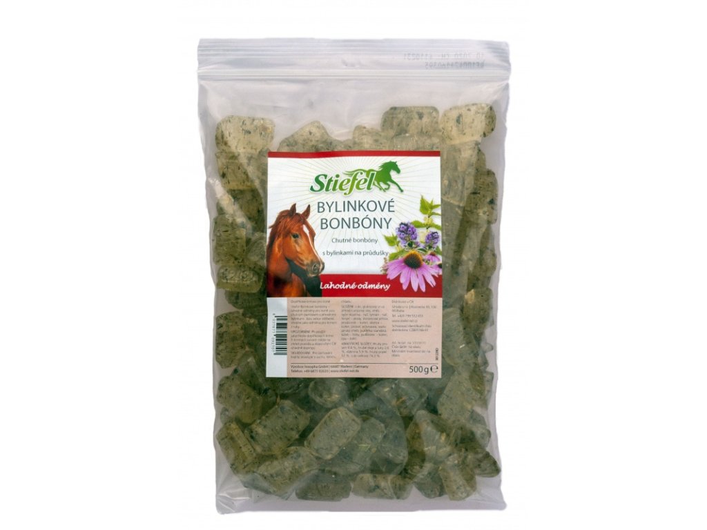 Stiefel Bylinkové bonbóny. Chutné bonbóny pro koně s bylinkami na průdušky. Chutná odměna se spoustou přírodních bylinek pro krmení z ruky.