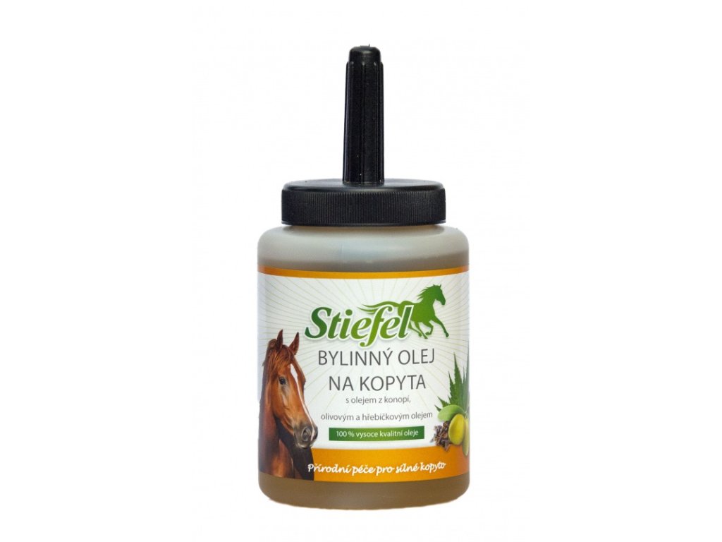 Veterinární přípravek STIEFEL BYLINNÝ OLEJ NA KOPYTA s  olejem z  konopí, olivovým a hřebíčkovým olejem -  péče o kopyta  na přírodní bázi.