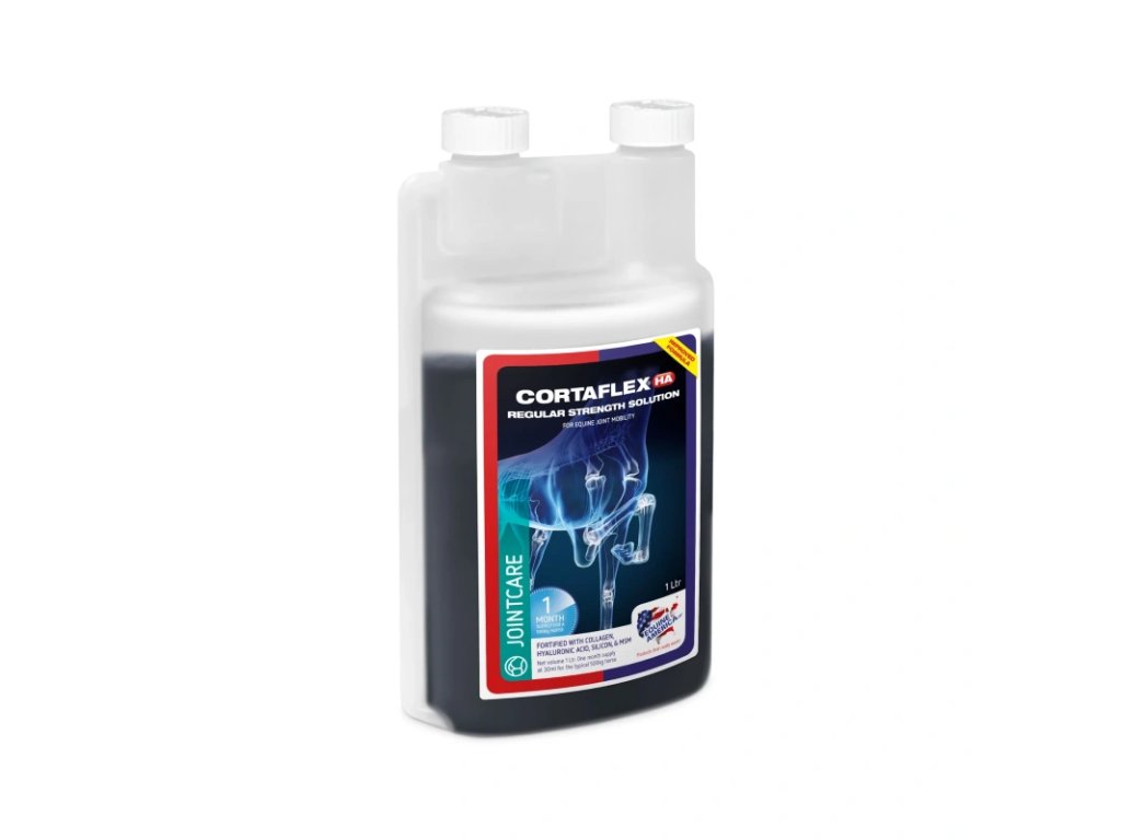 Cortaflex® HA Regular tektý je vyzkoušenou a testovanou směsí klíčových sloučenin s nízkým obsahem cukru, díky čemuž je vhodný pro koně a poníky náchylné k laminitidě. Cortaflex® HA Regular Powder obsahuje kolagen, kyselinu hyaluronovou, stopové prvky a aminokyseliny, které poskytují základní nutriční podporu pro udržení zdravé chrupavky a kloubní tekutiny. Chrupavka je houbovitý, elastický materiál, který pokrývá konce kostí v kloubu, působí jako hlavní tlumič nárazů a pomáhá snižovat tření. Kloubní nebo synoviální tekutina by měla být hustá a viskózní, aby koupala a lubrikovala kloub, a také působí jako životně důležitý tlumič nárazů.