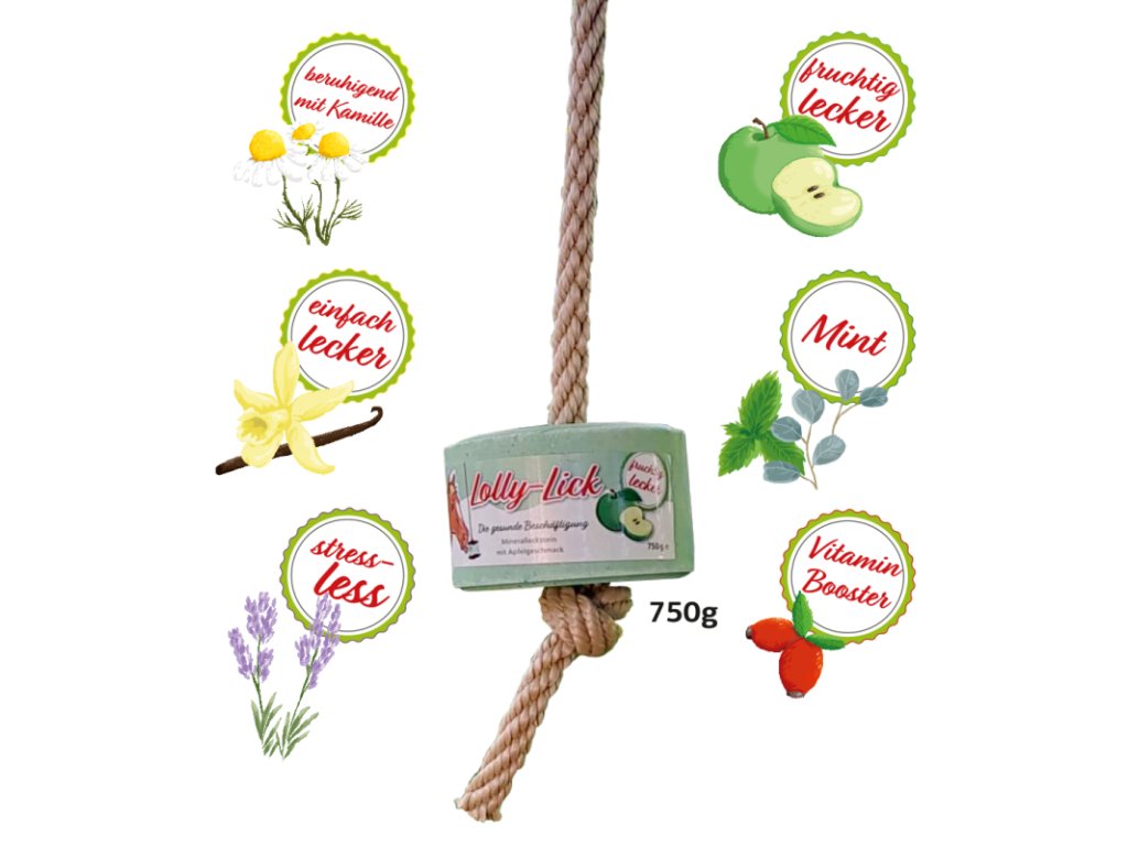 Naše uklidňující Lolly-Lick  je skvělá a zdravá hračka pro koně, která  poskytuje rozptýlení, ať už v boxu, ve výběhu nebo ve volné stáji a účinně pomáhá proti nudě nebo neklidu.