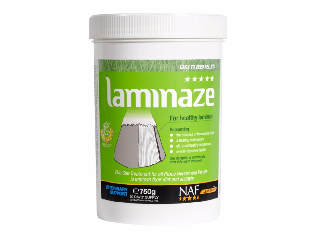 Cílené a jedinečné složení NAF Five Star Laminaze Pellets nabízí pětihvězdičkové ošetření pro koně a poníky náchylné ke schvácení, kteří jsou ve volném ustájení a v důsledku toho mohou být citliví na sezónní změny pastevního porostu, ke kterým dochází po celý rok. Receptura si zachovává nutriční podporu původní Laminaze, spojuje synergickou směs biologicky dostupné síry z MSM, klíčových živin pro podporu kopyta a antioxidantů z přírodních zdrojů, které podporují odbourávání škodlivých toxinů volných radikálů.