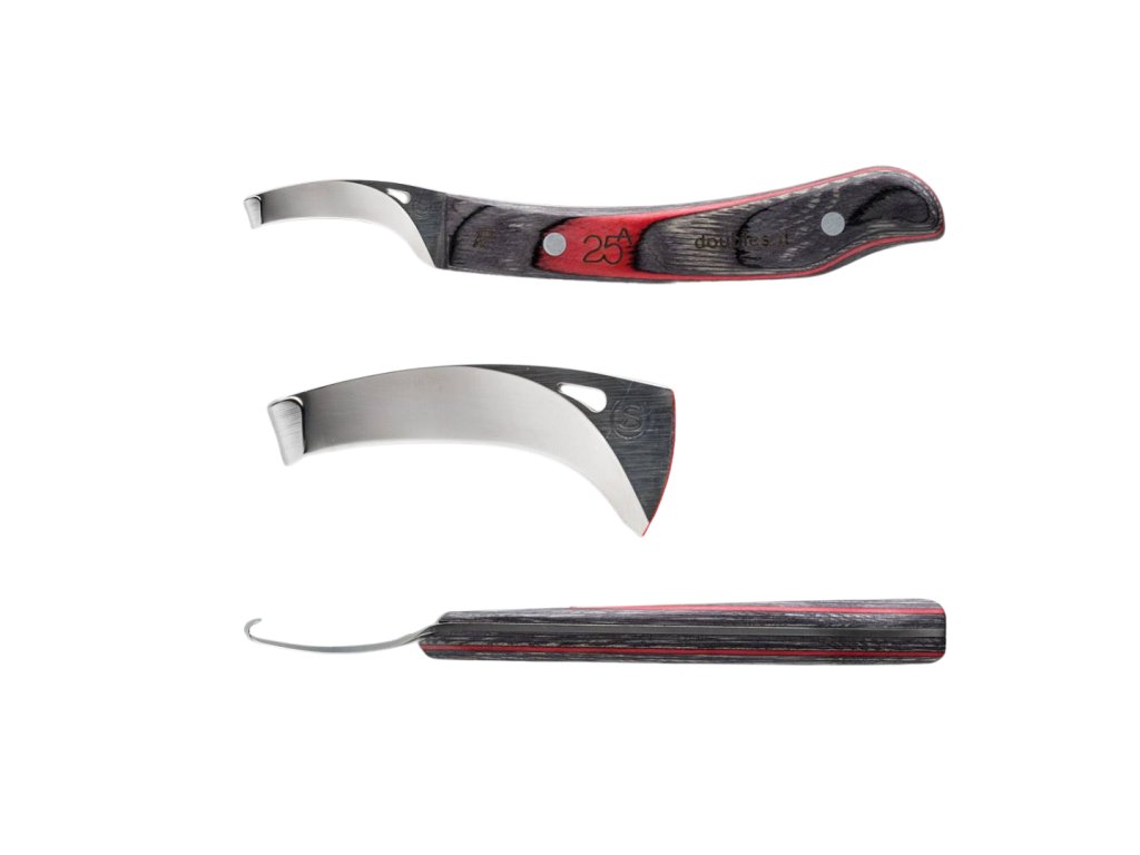 EXKLUSIVNÍ výroční nůž DOUBLE S. Výrobek vycházející z 25ti leté zkušenosti s výrobou podkovářských nožů nejvyšší kvality! RUKOJEŤ: Ergonomicky tvarovaná tak, aby optimálně podepřela záprstí a první prst s cílem co nejpohodlnějšího a nejjistějšího držení nože. Na konci vyhlazená s optimálním sklonem pro podporu palce ve směru s linií řezu. Použité dřevo je vysoce odolné proti poškození a vodě, s unikátním zbarvením. ČEPEL: Čepel prochází celým tělem nože a je velmi pevná, masivní a odolná proti poškození, celý nůž je těžší a optimálně vyvážený. Použitá ocel je vysoce kvalitní, velmi dlouho drží ostří a garantuje dlouhou životnost nástroje. Ostří čepele je optimalizováno na základě 25ti letých zkušeností s výrobou kopytních nožů. Hmotnost: 120 g Celková délka: 22 cm Délka rukojeti: 15,5 cm Délka ostří: 6,5 cm Tvar: vyhnutýVýrobce: