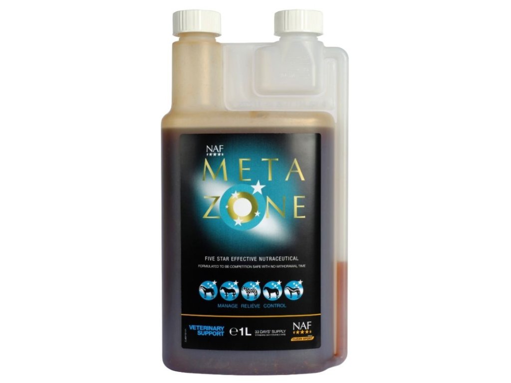 NAF Five Star Metazone je revoluční tekutý krmný doplněk pro koně. Byl speciálně vyvinut pro zmírnění a kontrolu různých koňských potíží.