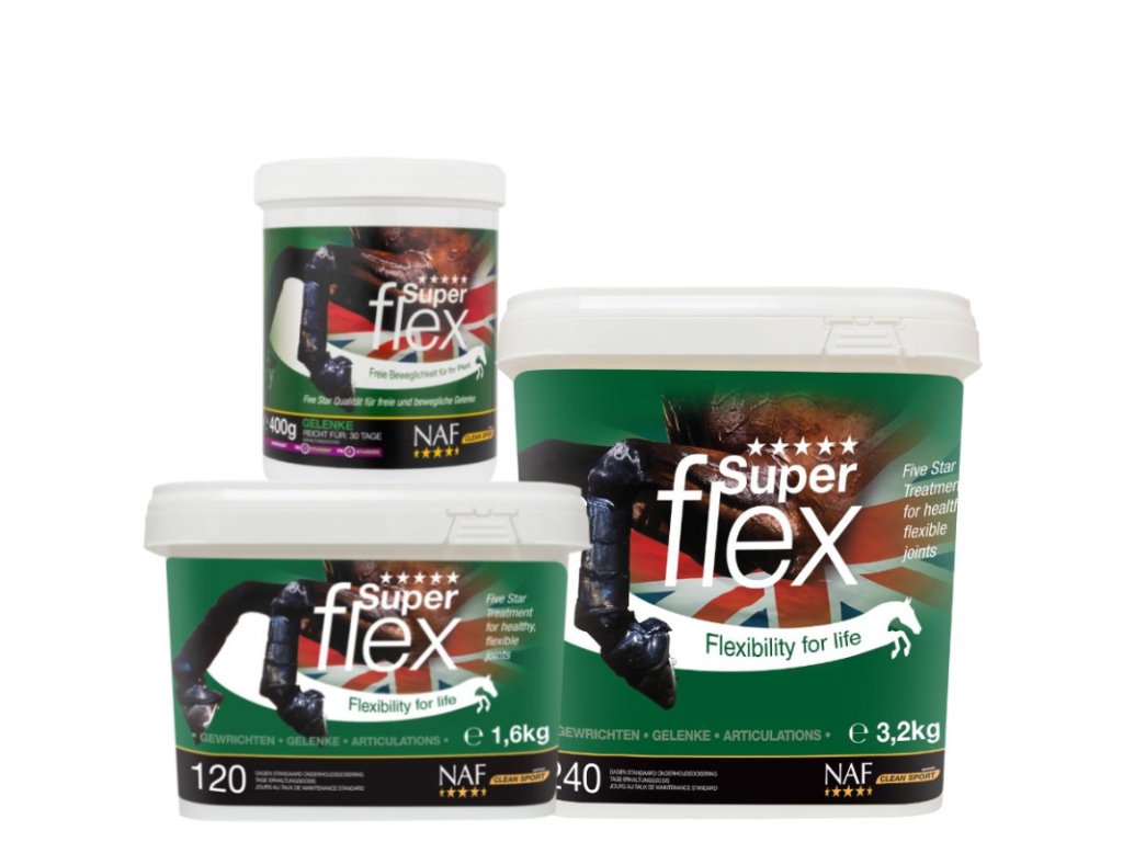 Superflex je tou správnou kombinací: Vědecky vyvážený poměr okamžitě vstřebatelného glukosaminu a chondroitinu, to nejkvalitnější MSM plus antioxidační složka té nejvyšší kvality, výhradně vyvinuté k tomu, aby eliminovala přebytečné toxiny hromadící se v okolí kloubu. Obsahuje klíčové složky ve správné rovnováze a v optimálních poměrech, vyvinutých během pětadvacetileté práce s koňmi.