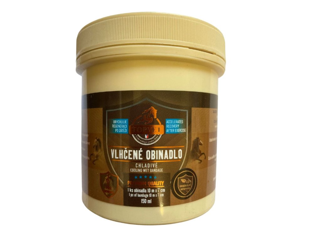 VLHČENÉ OBINADLO CHLADIVÉ / COOLING WET BANDAGE URYCHLUJE REGENERACI PO ZÁTĚŽI / ACCELERATES RECOVERY AFTER EXERCISE 1 ks obinadla 10 m x 7 cm 1 pc of bandage 10 m x 7 cm PRO KONĚ - FOR HORSES SLOŽENÍ: Voda, Alkohol denat., Glycerin, Kafr, Mentol, Kostival lékařský kořen extrakt, Emulgátor, Jedle silice, Eukalypt silice, Swiss alpine směs, Máta silice, Tymián silice, Kosodřevina silice COMPOSITION: Water, denatured alcohol, glycerin, camphor, menthol, comfrey root extract, emulsifier, fir oil, eucalyptus oil, Swiss alpine mixture, peppermint oil, thyme oil, dwarf pine oil NÁVOD K POUŽITÍ: Odstřihněte dostatečnou délku obinadla, přiložte na problematickou oblast a převažte obvazem. Aplikace formou zábalu je ideální pro dosažení maximálního účinku. Opakujte dle potřeby několikrát týdně. INSTRUCTIONS FOR USE: Cut a sufficient length of the bandage, apply to a problematic area and wrap dressing around. The wrap is ideal to achieve a maximum effect. Repeat as necessary several times a week. UPOZORNĚNÍ: Používejte dle návodu k použití. Nepoužívejte na sliznice a otevřené rány. Nepoužívejte vnitřně. Pouze pro zvířata. WARNING: Follow the instructions for use. Do not apply to mucous membranes and open wounds. Do not use internally. For animal treatment only. SKLADOVÁNÍ: Skladujte v suchu při pokojové teplotě. Chraňte před přímým slunečním zářením a mrazem. Uchovávejte mimo dosah dětí a nepoučených osob. STORAGE: Store in a dry place at room temperature. Protect from direct sunlight and frost. Keep out of the reach of children and uninformed persons.Doplňkové parametry